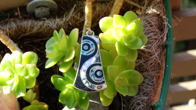Handmade Abalone Shell Pendant - Peruvian-Inspired -950 Silver - 6 g - 35 × 16