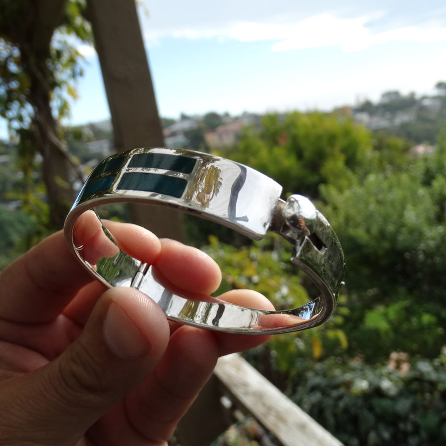 Peruvian Handmade Chrysocolla & Silver Bracelet with Bonus Earrings — 25 g — Code: EB90